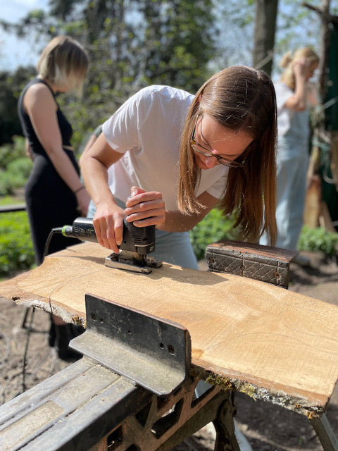 Samen zorgen we ervoor dat je op het einde van de namiddag een mooi afgewerkte serveer- snijplank naar huis kan nemen.