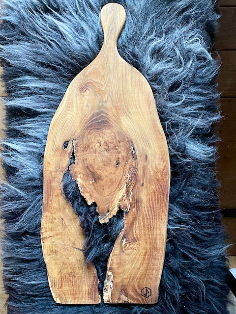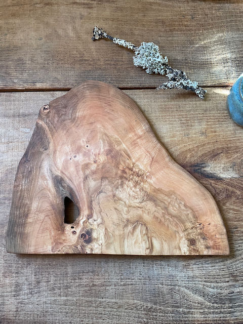 Serveerplankje gemaakt uit een gevuurde wilde kastanjeboom