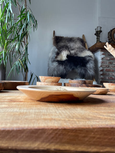 Unieke houten schaal in rippley fieldmaple
