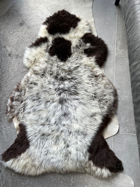 XL gevlekt bruin/ wit Jacob schapenvacht