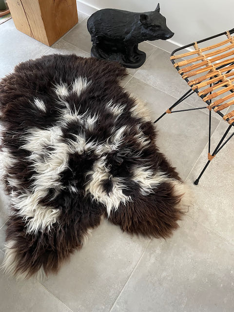 Donkerbruin/wit gevlekt Jacob schapenvacht XL