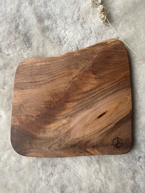 Deze serveerplank werd gemaakt uit een notenboom. Die stond in een tuin te Brugge.