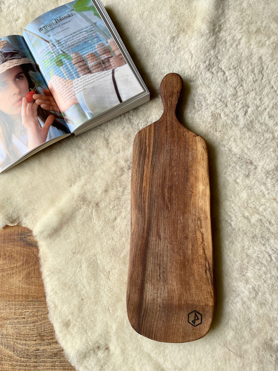 Deze plank werd gemaakt uit een walnotenboom. Die stond in een weide te Bourgondie.
