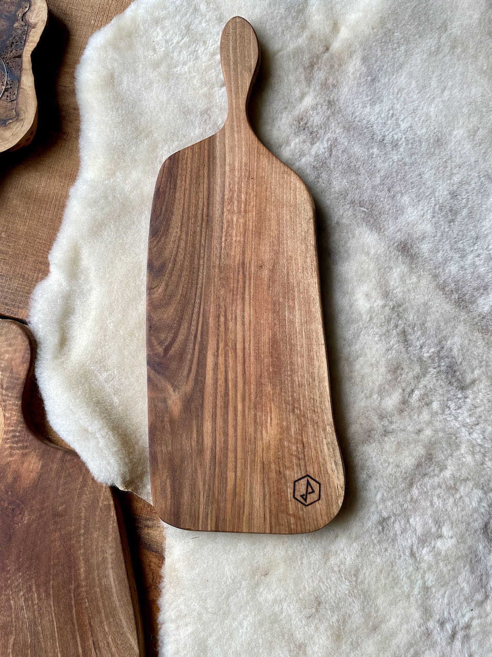 Deze tapas- snijplank werd gemaakt uit een walnotenboom. Deze boom stond in een tuin te Gent.