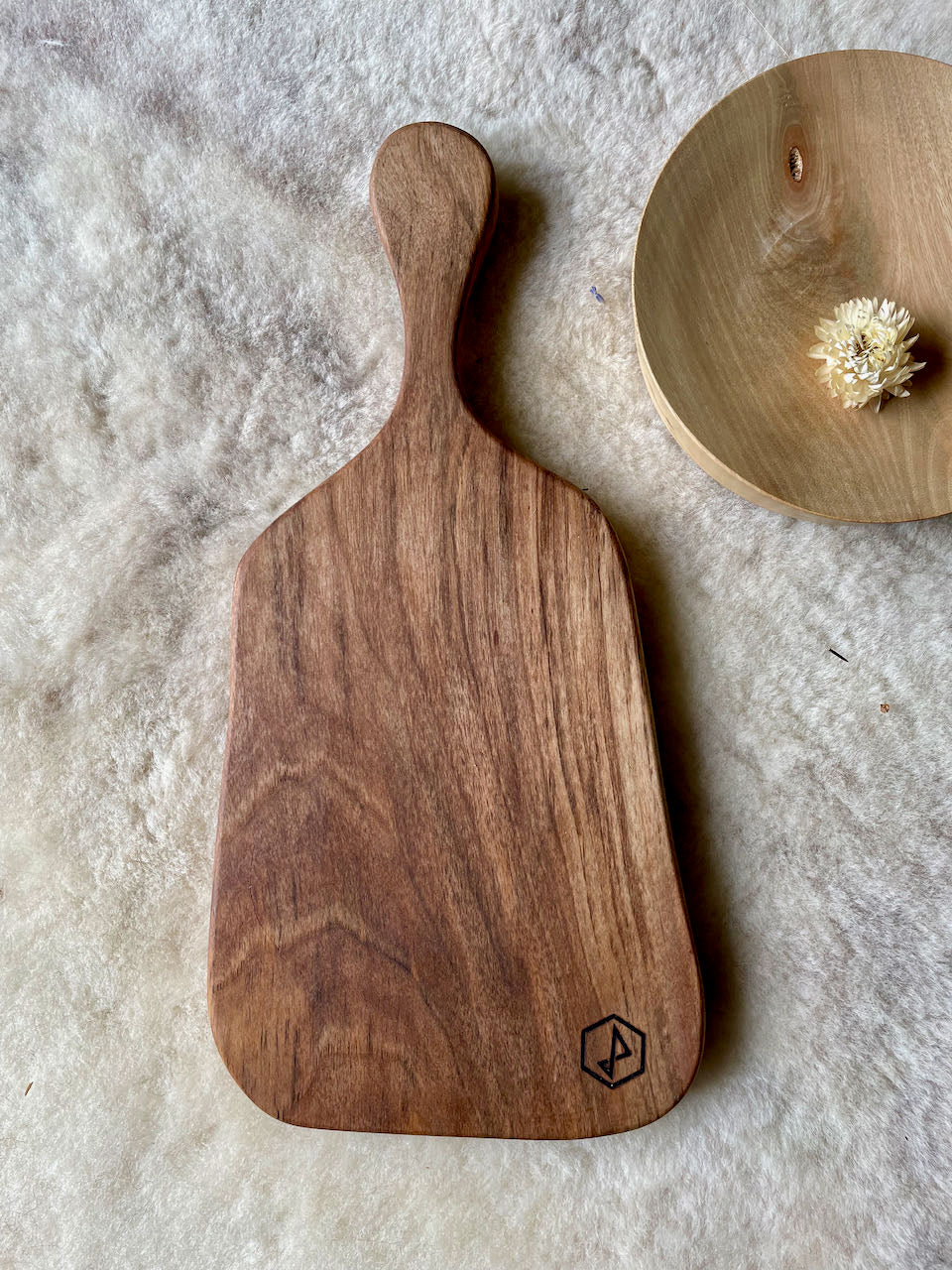 Dit plankje werd gemaakt uit een walnotenboom. Die stond in een tuin te Brugge.