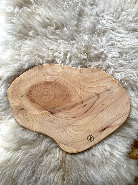 Deze mooie serveerplank werd gemaakt uit een oude douglasboom. Deze boom stond in een tuin te Wielsbeke.