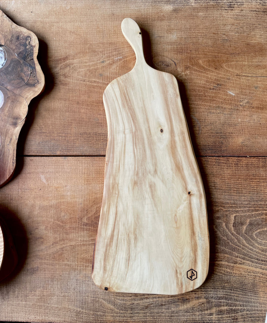 Deze tapasplank werd gemaakt uit een tak van één van de oudste bomen in Roeselare. Die had de 2 WO overwonnen maar helaas de storm van 2 jaar geleden niet.