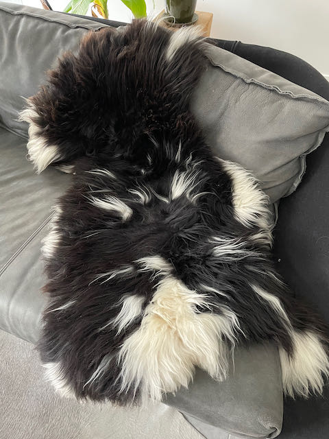 Dit prachtig vachtje is heel dik en naturel. Ideaal om als tapijtje te gebruiken of om in een zetel te leggen.